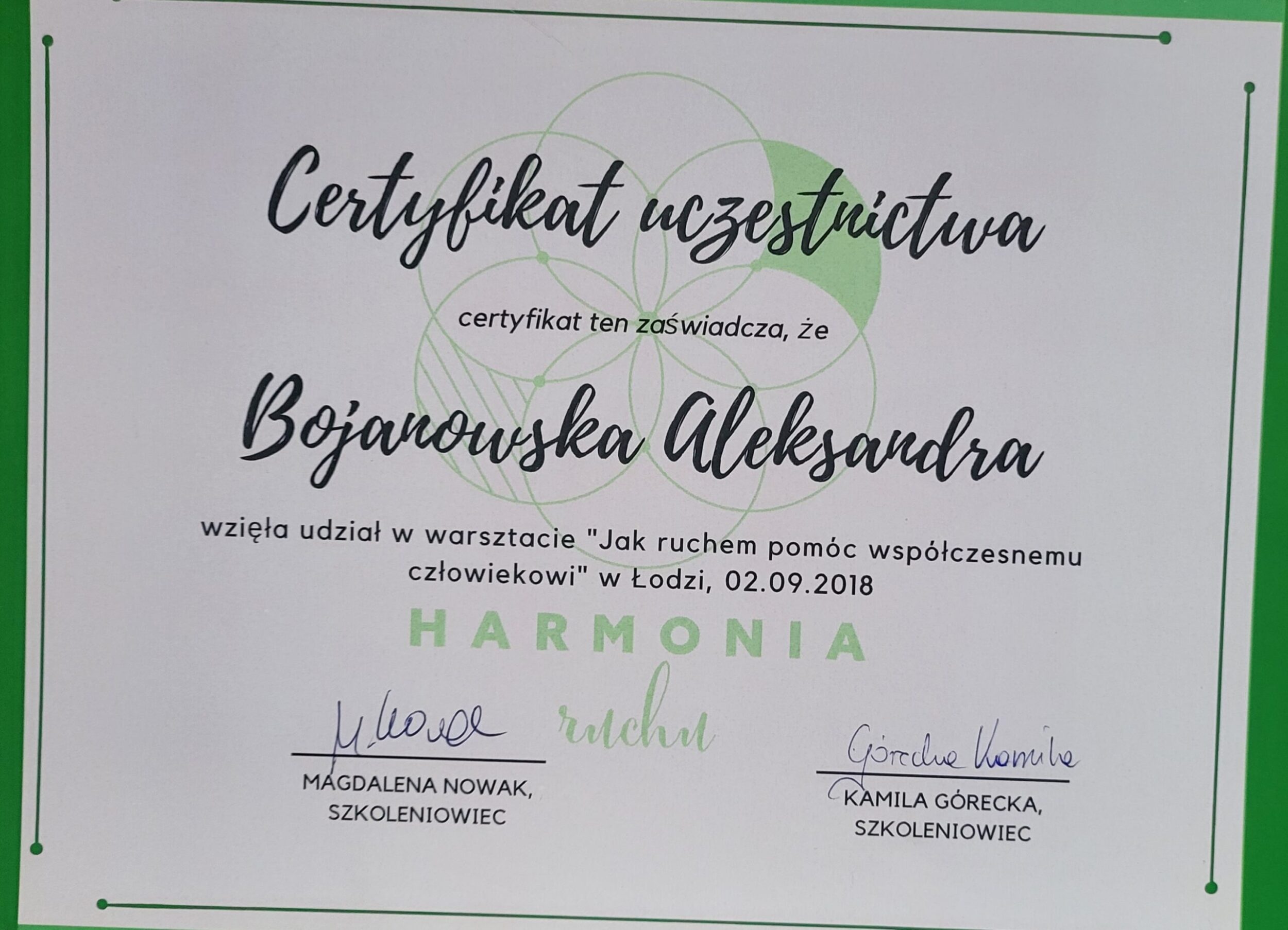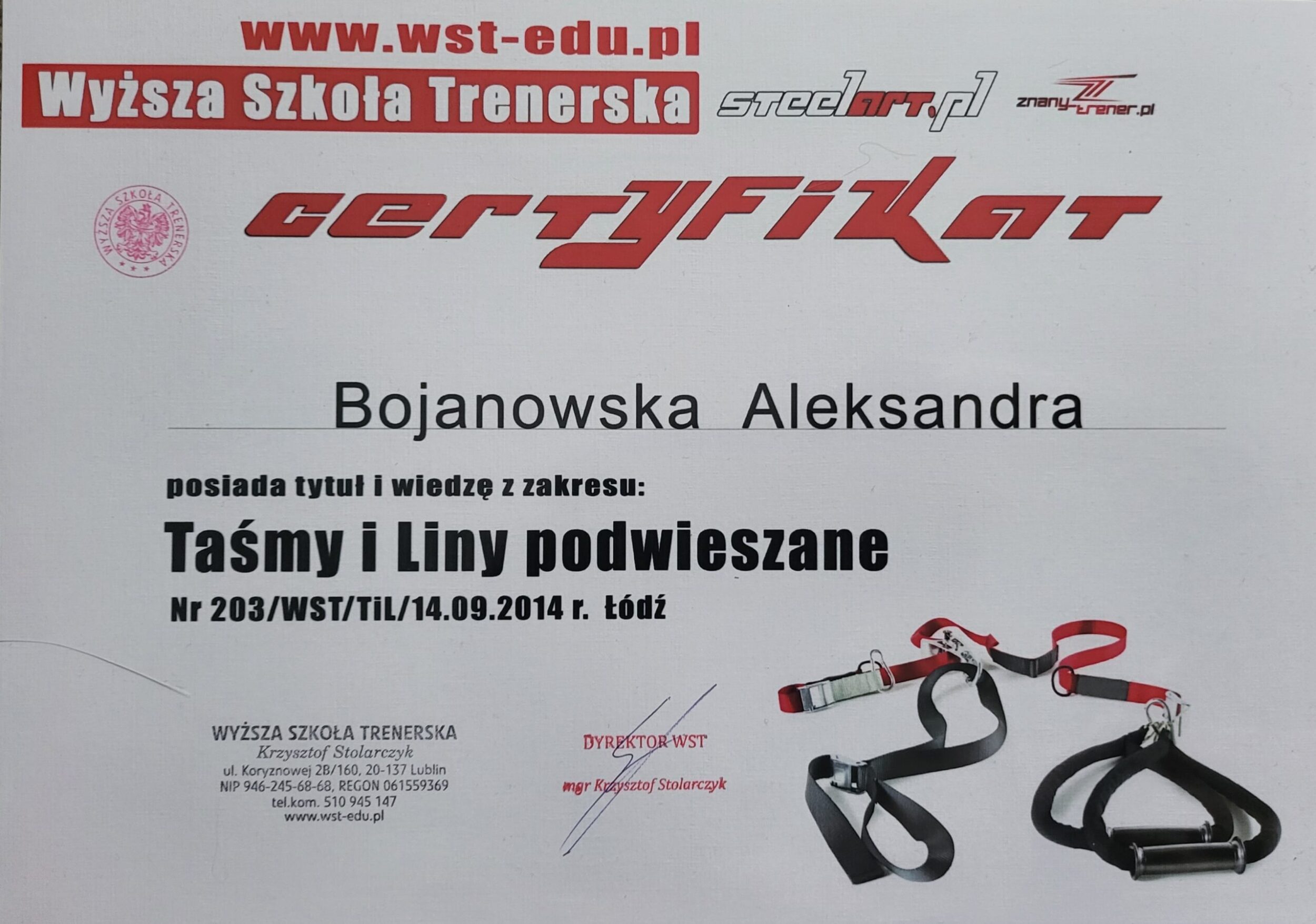 Najważniejsze dla mnie jest zdobywanie wiedzy. Pragnę, aby moi podopieczni byli przekonani, że czas spędzony ze mną przyniesie im jak najlepsze efekty. Na treningach personalnych oraz na zajęciach grupowych staram się stosować różne techniki dostosowane do poziomu i zaawansowania uczestniczących. Urozmaicam ćwiczenia tak, by stale rozwijać i usprawniać ciało we wszystkich jego zakresach ruchu. Chcąc zapewnić najwyższy standard zajęć i profesjonalną opiekę stale się dokształcam. Uważam to za niezbędne, ponieważ bardzo często zgłaszają się do mnie osoby po urazach, operacjach i z dysbalansem kręgosłupa. Dzięki uzyskanym kwalifikacjom jestem w stanie dostrzec o wiele więcej słabych punktów u moich podopiecznych.
